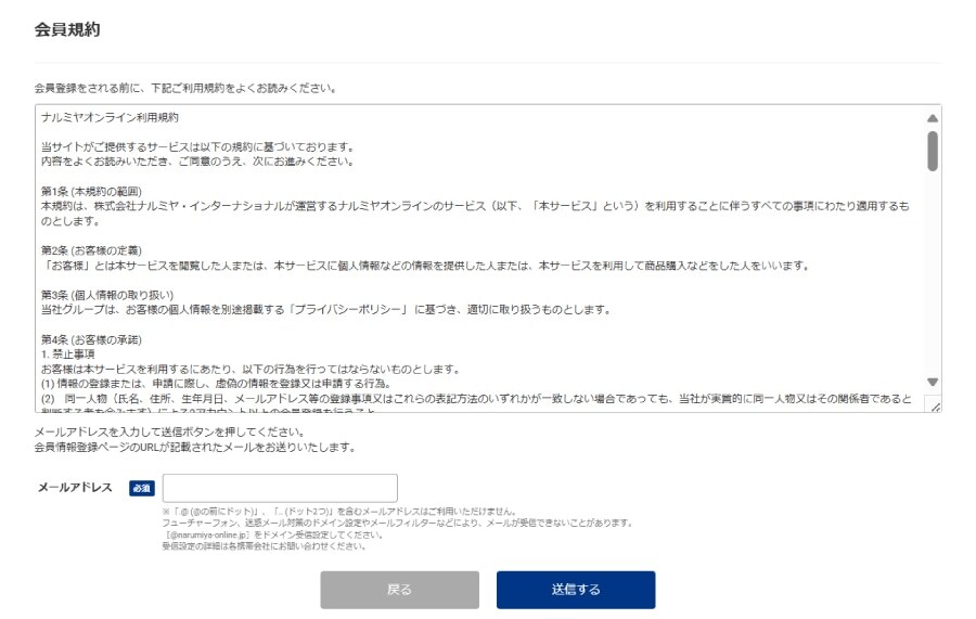 NARUMIYA ONLINE会員の利用規約